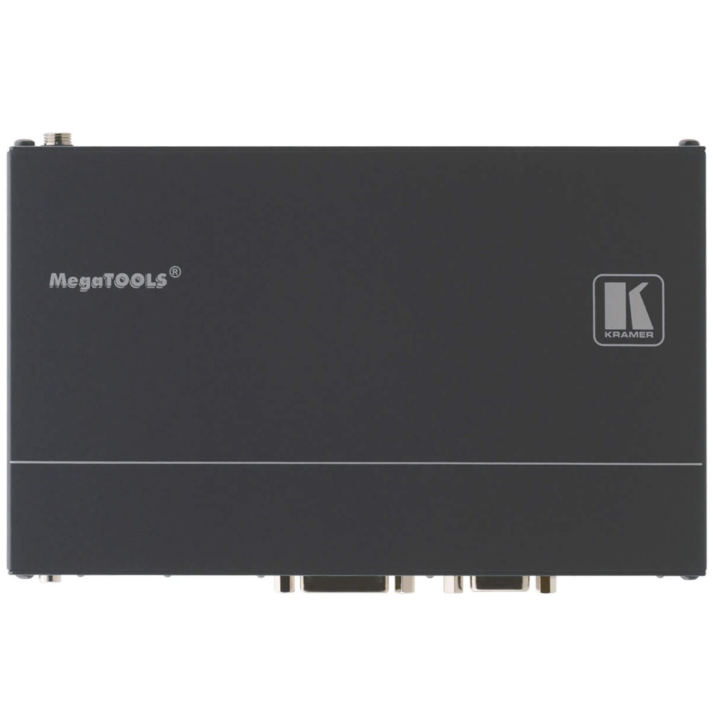 - Компактный корпус Kramer MegaTOOLS™, позволяющий установить 2 прибора в один ряд в стандартную 19-дюймовую аппаратурную стойку (1U) при помощи опционального адаптера RK-T2B-B