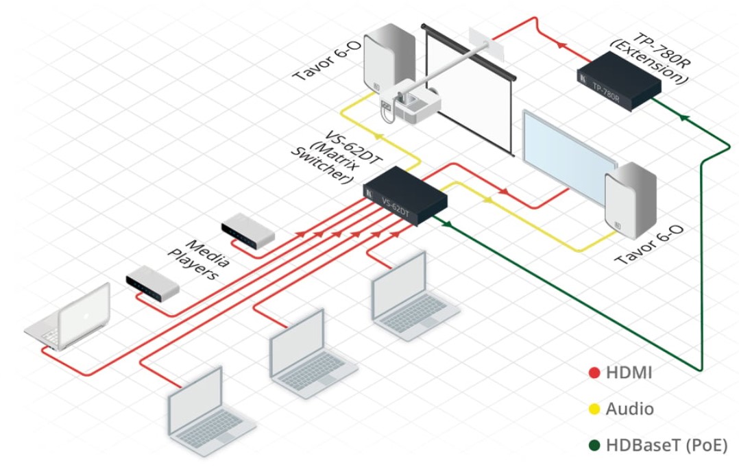 - Выход HDBT (с поддержкой PoE) + выход HDMI