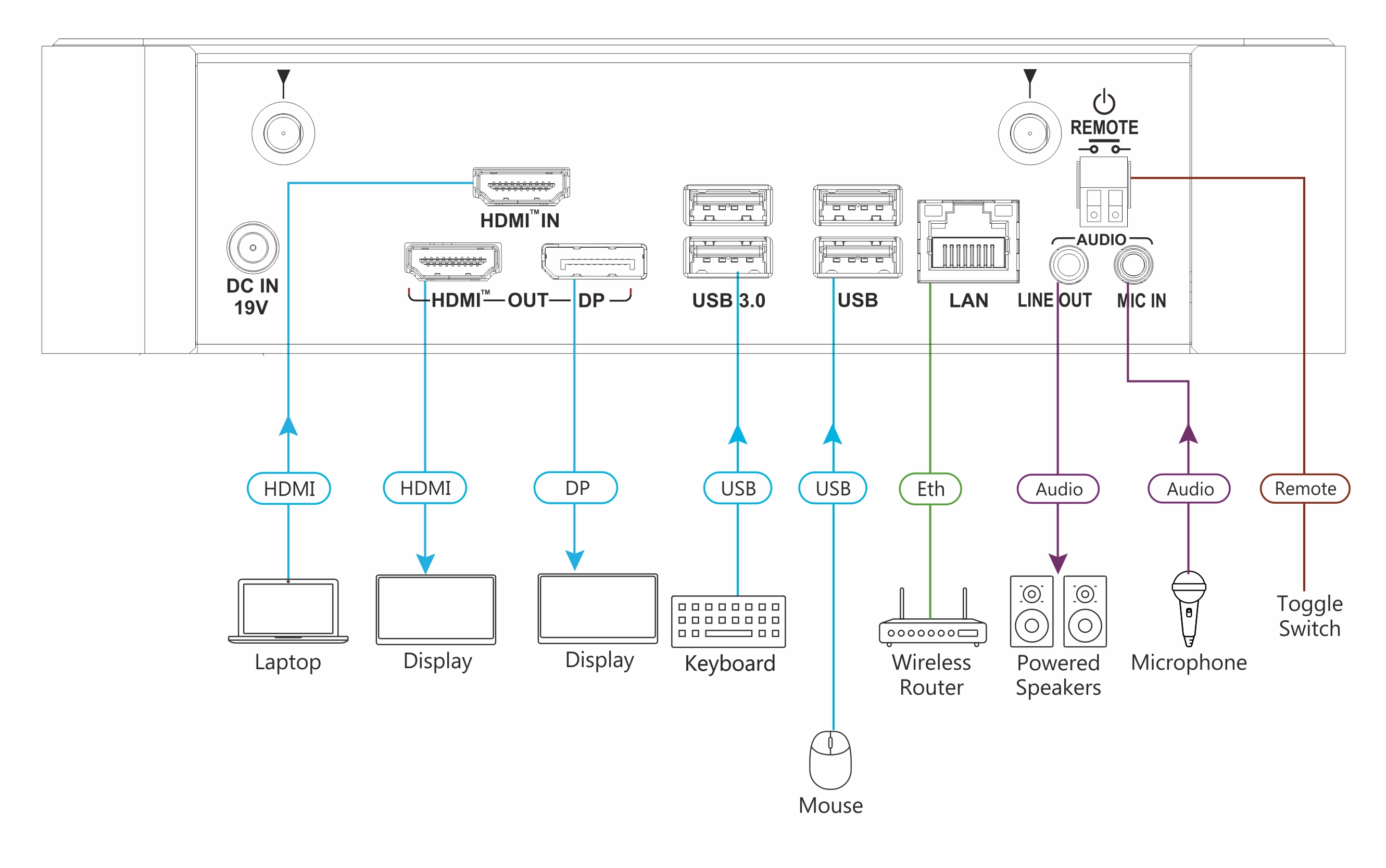 К VIA Campus² Plus могут подключиться до 254 пользователей. Благодаря реализованной в линейке VIA концепции BYOD (Bring Your Own Device (Принеси свое личное устройство)) к VIA Campus² Plus можно подключить устройства Apple и Android ноутбуки Windows и Chromebook®, с помощью встроенного Wi-Fi роутера, или по локальной сети Ethernet.