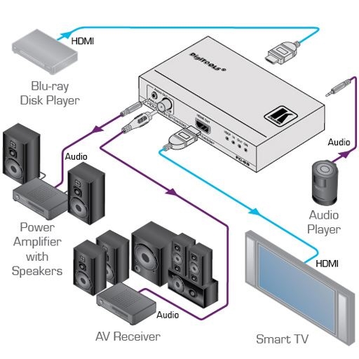 - ПоддержкаARC, некомпрессированного аудио до 7.1, PCM, Deep Color, CEC, а также эмбедирование аудио в HDMI вне зависимости от наличия видеосигнала HDM на входе