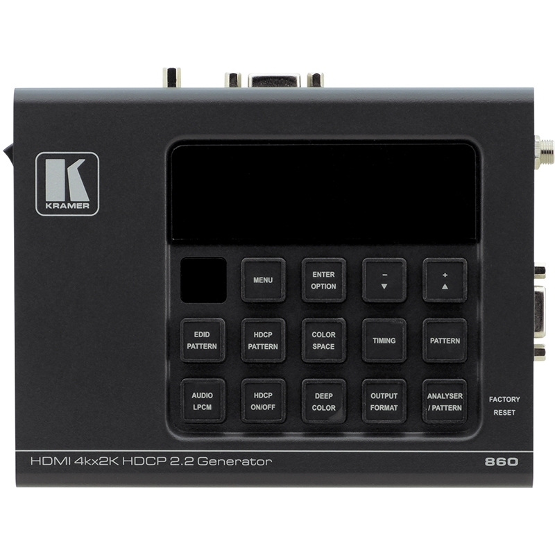 860 — удобный высокотехнологичный инструмент, в компактном корпусе которого объединены генератор испытательных сигналов и анализатор сигнала HDMI HDR cо скоростью передачи видеоданных до 18 Гбит/с (6 Гбит/с на один канал). Прибор помогает выявлять и устранять проблемы в тракте прохождения сигнала HDMI разрешением до 4K@60 Гц (4:4:4) с кодированием HDCP 1.4 / 2.2. В устройстве предусмотрен выбор из 88 значений разрешения видеосигнала и 55 видов испытательных изображений, а также более десятка различных типов анализа аудио-видео характеристик. Поддерживаются функции анализа пакетов данных HDMI, включения / выключения поддержки HDCP, а также функции анализа, загрузки и эмуляции данных EDID. В дополнение к вышеуказанным возможностям имеется функция мониторинга служебного канала SCDC, позволяющая определять наличие и проводить анализ сигналов HDMI cо скоростью передачи видеоданных до 18 Гбит/с. В приборе также имеется генератор до 8 каналов испытательного тона LPCM в широком диапазоне частот и уровней аудиосигнала.