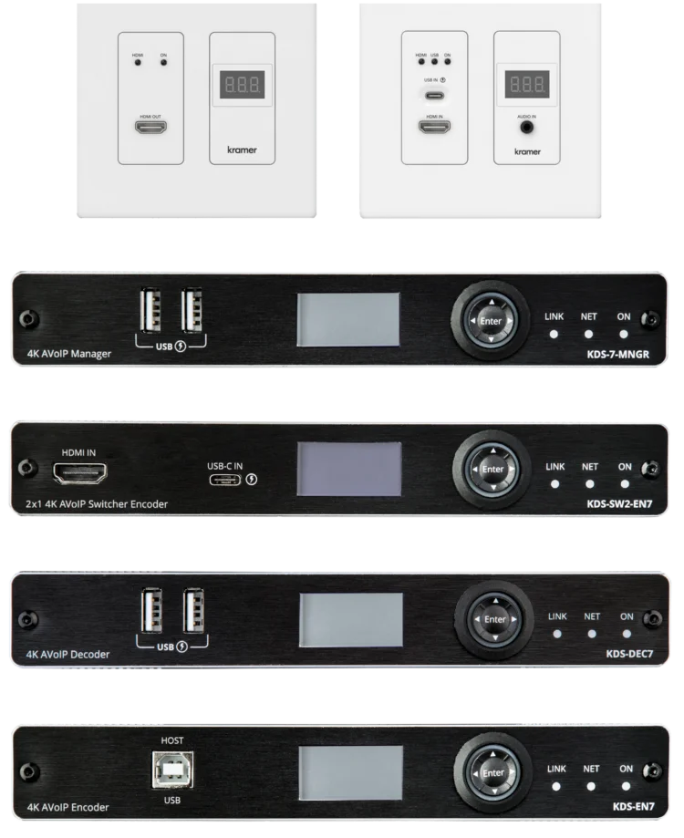 Kramer представляет комплекс решений для потоковой передачи AVoIP посредством сетей 1GE. Все они обеспечивают безопасность на высшем корпоративном уровне, предоставляя удобные инструменты управления. Вы сможете подобрать решение, которое будет соответствовать конкретным требованиям вашей сети к качеству аудио, видео, используемой пропускной способности и уровню задержки сигнала.