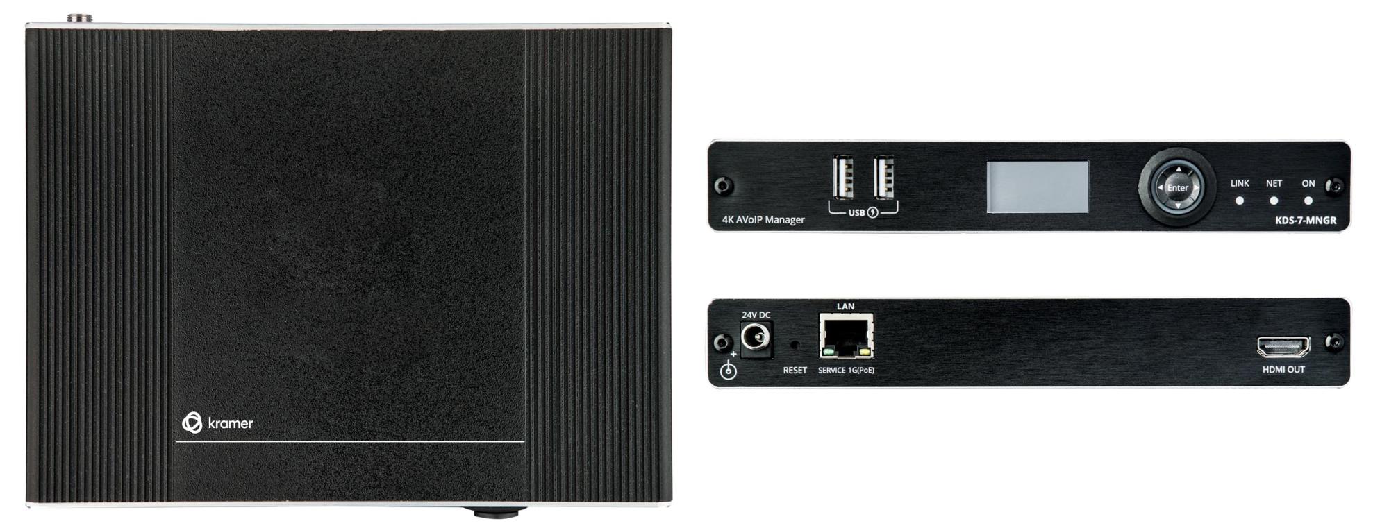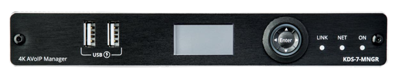 KDS-7-MNGR — контроллер для управления системами на основе устройств серии KDS-7, находящимися с ним в единой локальной сети с использованием встроенных веб-страниц. Помимо выбора канала, управления эмбедированием/деэмбедированием аудио и т.д., KDS-7-MNGR позволяет конфигурировать виртуальные матрицы, видеостены и системы KVM, построенные на основе приборов KDS-EN7, KDS-DEC7, KDS-SW2-EN7, WP-SW2-EN7, а также объединять эти приборы в группы и осуществлять их групповую работу. Настройки всех подключённых кодеров/декодеров, включая конфигурацию IP-режимов и адресов, настройки совместимости, и т.д. наглядно отображаются и легко обновляются.