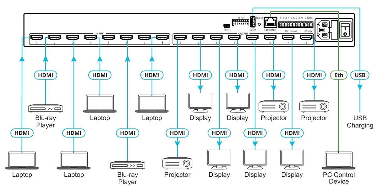 - Матричный коммутатор 8х8 HDMI