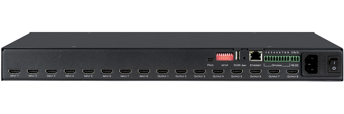 Матричный коммутатор 8х8 HDMI с независимой коммутацией эмбедированного звука; поддержка 4K60 4:4:4